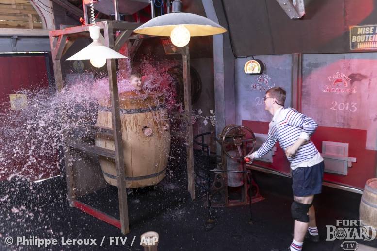 Bienvenue dans la cave du château Boyard ! Le Père Fouras s’est lancé dans le commerce de jus de raisins. Dans cette épreuve, un candidat va enfiler un costume de « tonneau ». Ce costume est en mousse et va être en mesure d'aboscorber le jus de raisin.