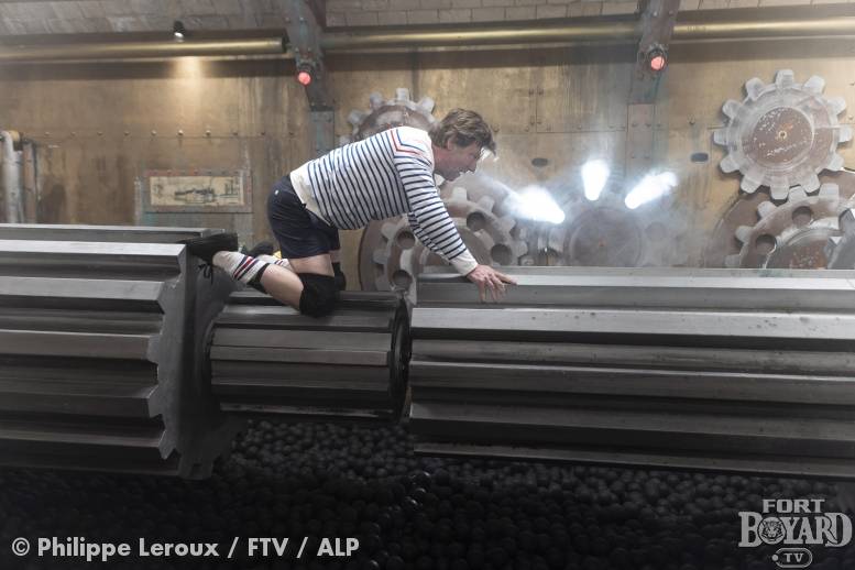 Le candidat se retrouve dans la Salle des Machines du fort. En face de lui se trouvent une succession de gros engrenages. Mon objectif va être de ramper sur ces engrenages jusqu'à la clé. La difficulté de cette épreuve réside dans le fait que les engrenages sont mécanisés et pivotent autour de leur axe.