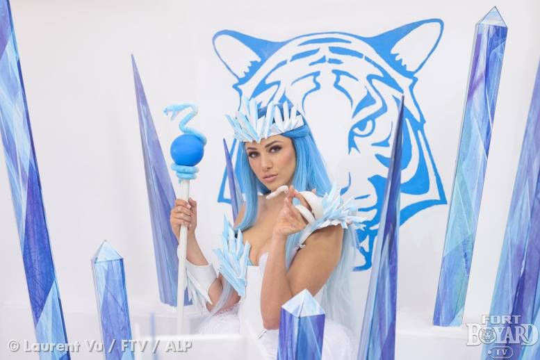 • En 2013, encore un changement d'actrice et donc, changement de costume. Elle porte désormais une robe blanche longue dont la partie haute fait office de bustier. La partie basse de sa tenue est fendue. L'avant de sa robe est attaché grâce à une pièce métallique blanche en forme de tête de tigre. Son avant bras gauche est recouvert de tulle blanche. Sa chevelure rousse est recouverte par un capuchon blanc. Cette année, Blanche ne porte plus de loup devant ses yeux, mais une tiare sertie d'une pierre sur son son front. Les ongles de ses mains sont recouverts d'un vernis rouge.